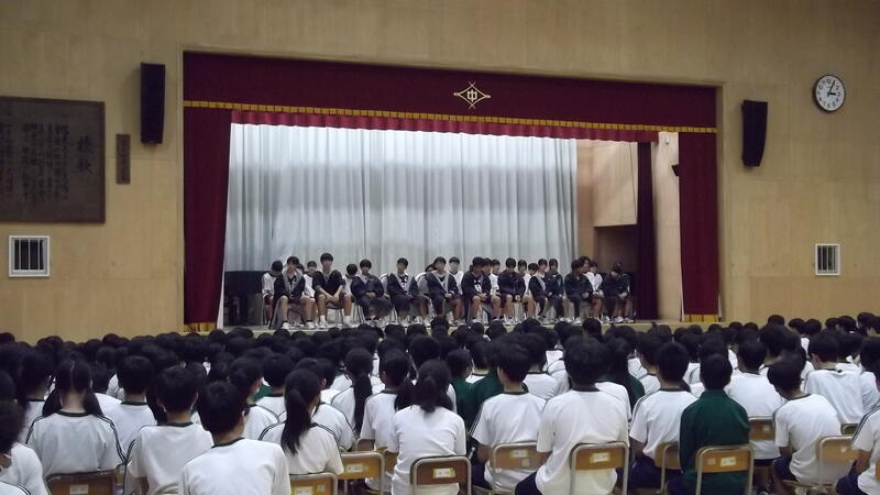 選手たちへは全校生徒から温かい拍手や応援団による熱いエールが送られ、