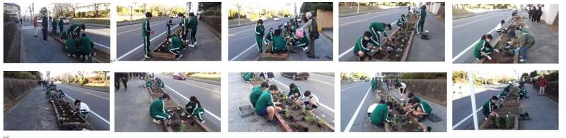 ボランティアには多くの生徒が参加し、花の苗を手際よく花壇に植えていきました。
