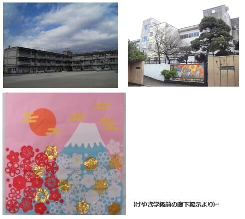 けやき学級の廊下には、生徒の作品と季節の掲示物が掲出されています。