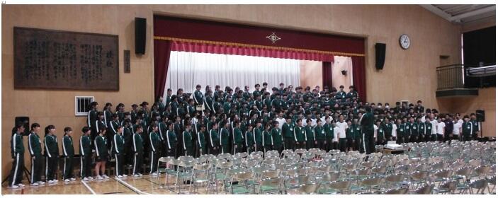 式の開始に先立ち、2学期の学習活動の成果や冬休み期間中などに行われた大会の結果報告が行われ、生徒たちの努力の成果が全校生徒に共有されました。