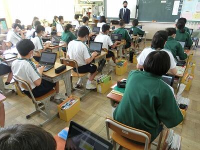 本日,1年1組で授業研究が行われました。教科は「英語」です。教育委員会から講師を招き,GIGAスクール構想における英語授業の実践を行いました。1年1組の生徒と,先生で協力して,楽しく実のある授業となりました。これからも様々な授業で活用されていきます。