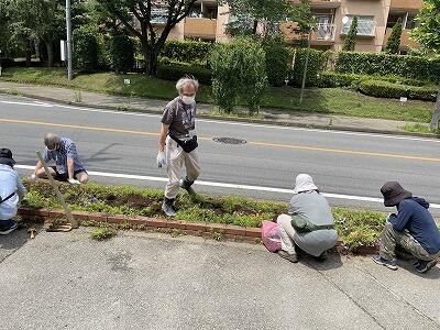 本日13時より,ふるさと協議会の環境委員会の皆様を中心に,松葉中前の花壇整備を実施していただきました。