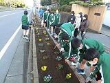 本日,ふるさと協議会の方々と,本校の生徒達による正門前の花植えが,行われました。
