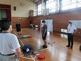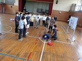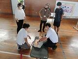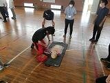 AEDの使い方,心肺蘇生法,連絡形態など場面を想定して体育館で研修を実施しました。