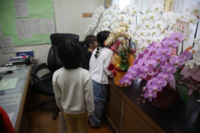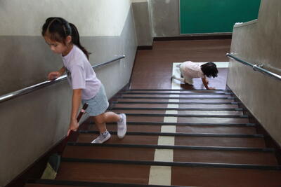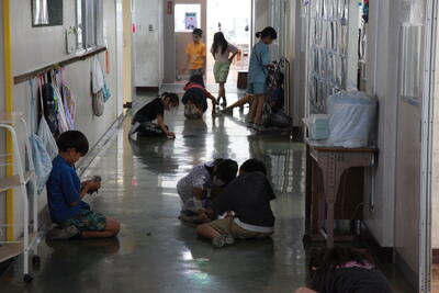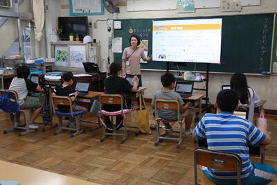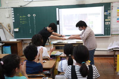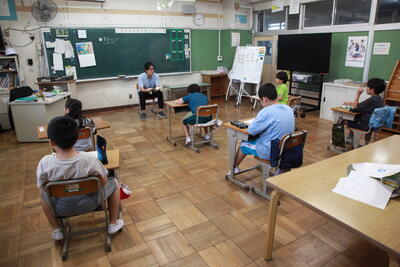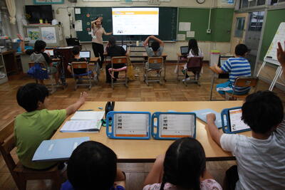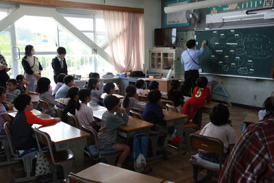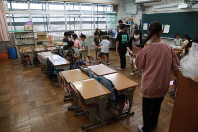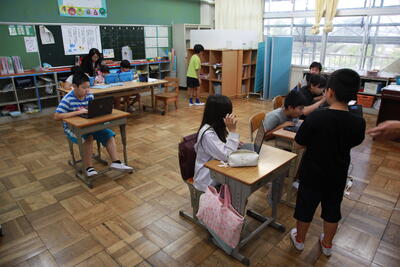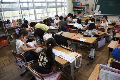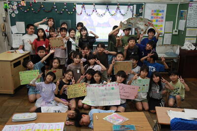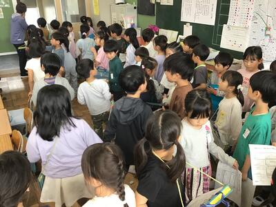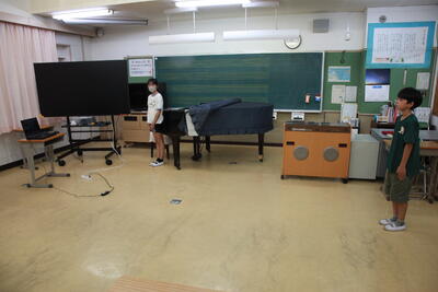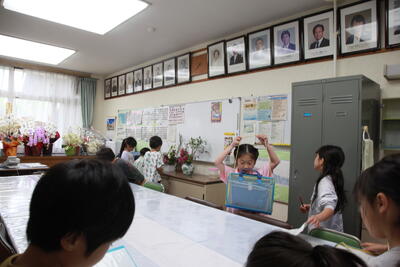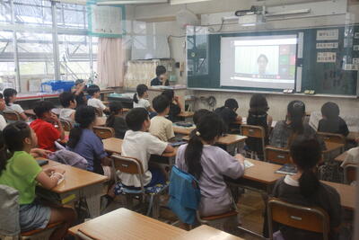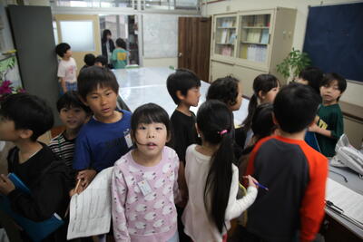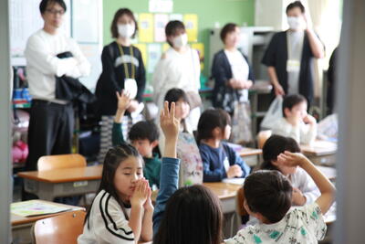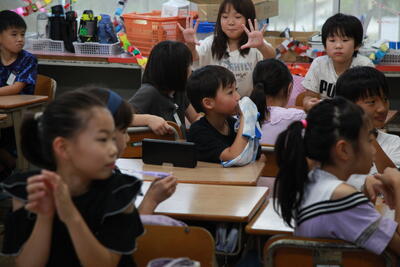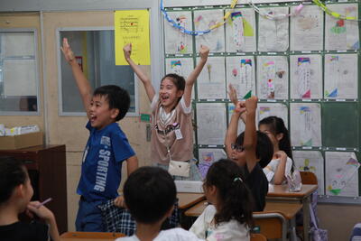 クラスを回った際に、子どもたちは、テレビカメラに映りたいということで、一生懸命