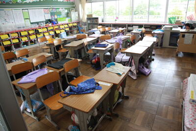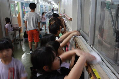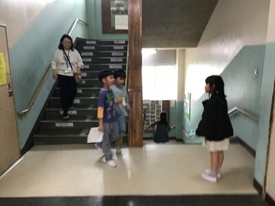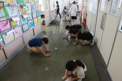 今日は6年生と1年~4年生が校内で顔を合わせる最後の日です。名戸ケ谷小では、最終日に在校生が廊下に並んで