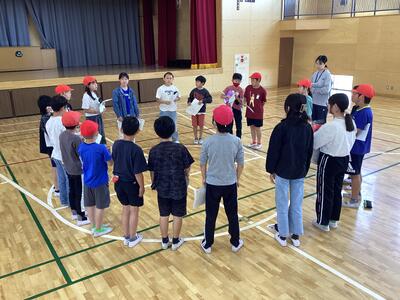 今日は6年生が、校庭で学年のお楽しみ会を行っていました。