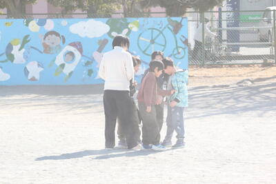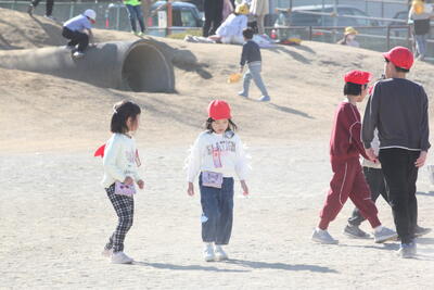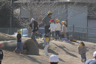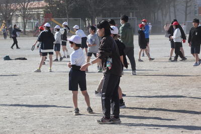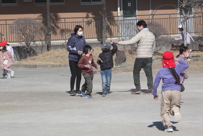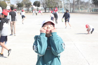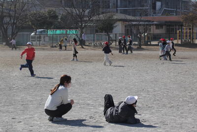 今日も冬晴れです。雲一つありません。暖かい時間だったので、半袖で走り回る子もいました。