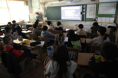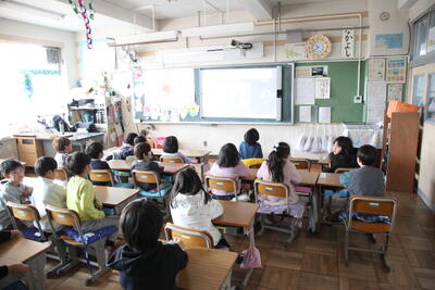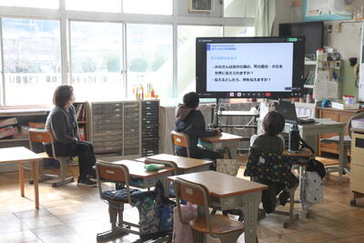 そして学年閉鎖している3年生を除く、1、2、4、6年生は教室で報告会を聴くことができました。