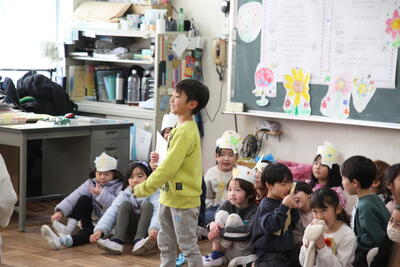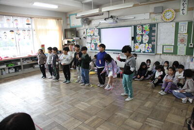 その他、2月の生活目標について5年1組が劇を使って説明してくれました。自分で考えて行動する心の強さを身につけよう というテーマです。笑いを織り交ぜながら全校児童にわかりやすく伝えてくれました。