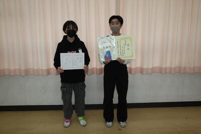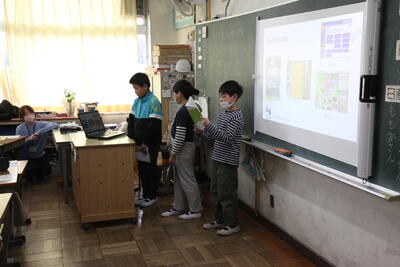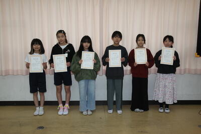 まずは、こども県展の絵の表彰や校内書き初め展の表彰、そして、児童会役員選挙の当選通知書の進呈式が行われました。