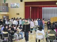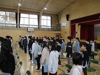 「別れの言葉」が終わりました。椅子を戻して「校歌斉唱」です。