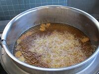 「トンカツ」を揚げています。揚げているいい音が聞こえます。