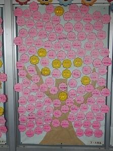 3学期になったばかりですが、「読書の木」の御報告を。あとちょっとで2学期に花をはれなかった子が今日、50冊と100冊を達成しました。