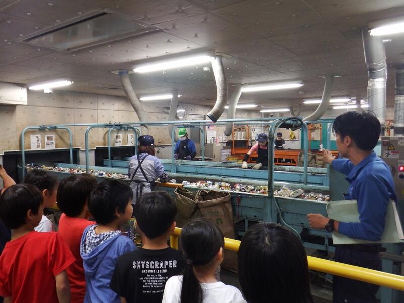 特にびんの手選別のところでは流れてくるびんを4種類の色別に選別しているところを見て,「流れてくるスピードが速いのにしっかり分けられている」など驚いていました。
