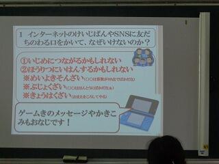 教育委員会の山田先生を講師に招いて,インターネットの正しい利用方法や注意点を教えていただきました。