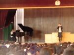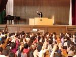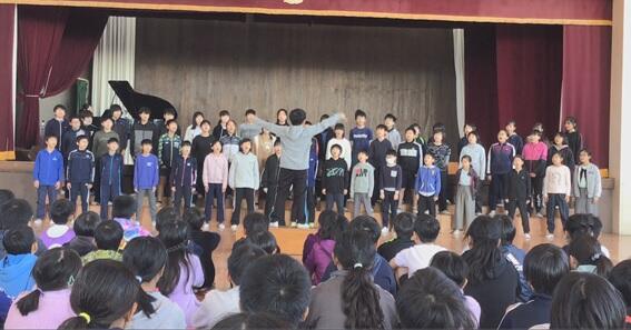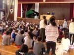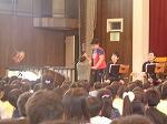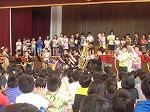途中,子どもたちも参加して校歌や「にんげんっていいいな」を合唱したり,器楽部と「宝島」を共演したりして楽しみ,子どもたちもとても好評でした。