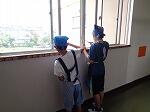 柏警察署生活安全課の方お二人を招き,実際に不審者が6年1組に侵入した時にどう子どもたちが逃げ,安全を確保するか,ということを全校児童で取り組みました。