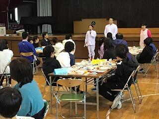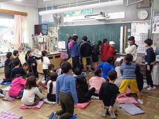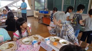 いよいよ給食が始まり,お迎えに行った子ども達は手をつないで緊張気味でしたが,優しいおじいちゃんおばあちゃんの表情にすぐに慣れて,大きな声で話をしていました。中には,クイズを準備した子ども達も!