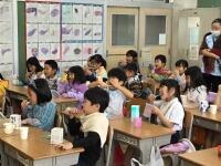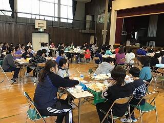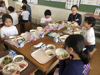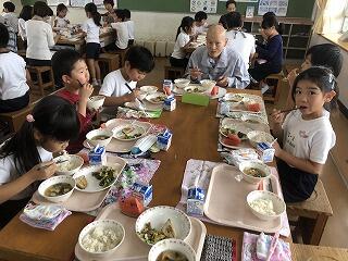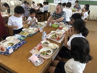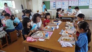楽しくお話ししながら一緒に給食をいただきました。