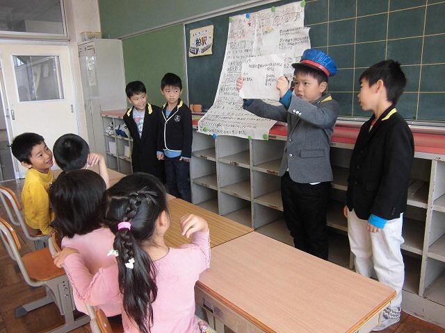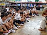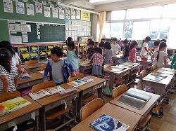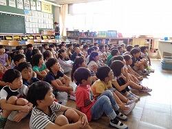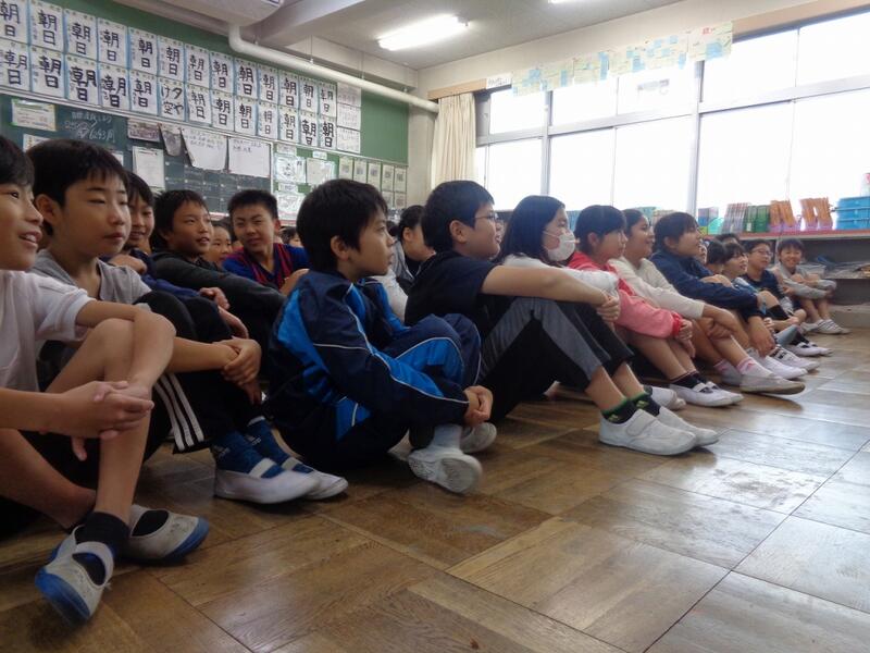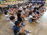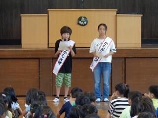 今月の生活目標「みんなのために進んで行動しよう」について佐々木先生から話があり,そこで3年生の代表の子が「1・2年生のために働く」と宣言していました。