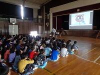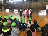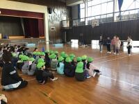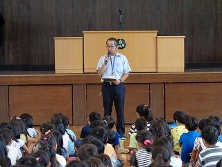 訓練が終わった後,体育館に集合して安全を確認してから訓練の様子をビデオで見ました。それから,警察の方が「いかのおすし」について説明してくれました。