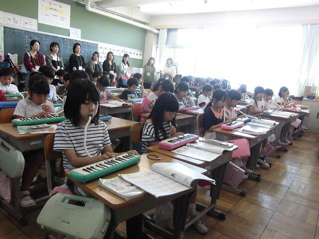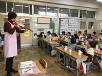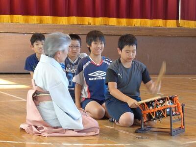 担任の先生も授業に参加してくださり,琴に合わせて歌ったり演奏したりしました。