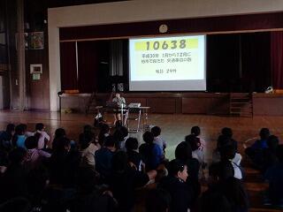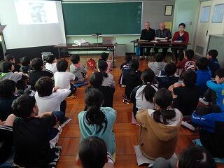 校長先生より,阪神大震災後のボランティアについて話があり,誰かのために働くことの素晴らしさについてとボランティアに関する本の紹介がありました。最後には,残りの日々,自分が誰かのためにできることを学校や学級でやって明るい学級と学校にしましょうというお話しでした。