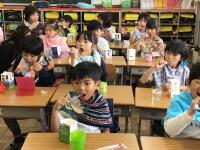 1年生から6年生まで,勢いよくパンにかぶりつき,おいしくいただきました。