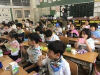 最後におじいちゃんからのお話がありました。学校のカレーは野菜がたくさん入っていておいしくて楽しいカレーだと喜んでいただきました。子ども達の元気な声を聞くと元気が出ると言われて,ますます元気になった2年1組です。