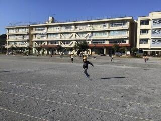 学校の中を探検したり,ドッジボールで遊んだりしました。