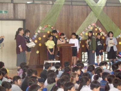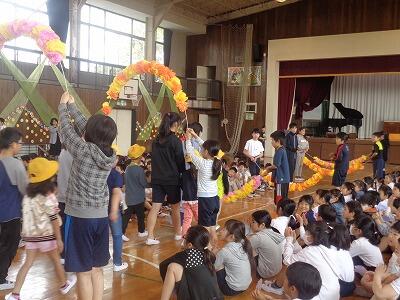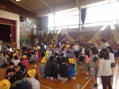 児童会の皆さんが準備したゲームを全校児童で楽しんで行いました。