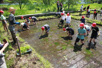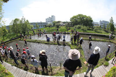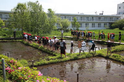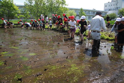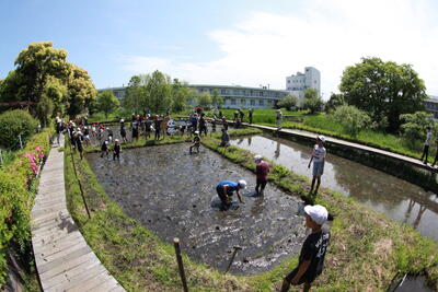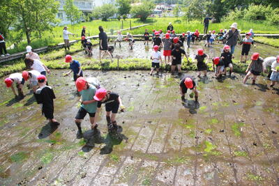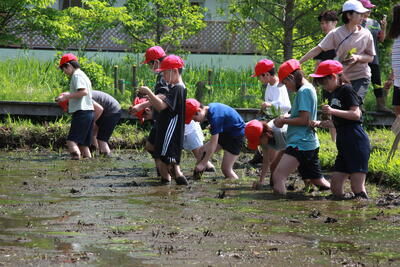 5年生が、田植えを行いました。保護者の皆様の御協力も加わり、