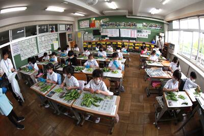今日は、1年生が給食で食べるそらまめの皮むきを行いました。