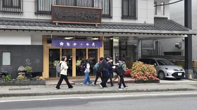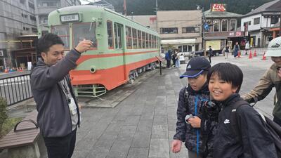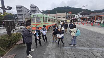 神橋から東武日光駅まで、グループで回ります。途中、テレビ撮影のロケに遭遇しました。