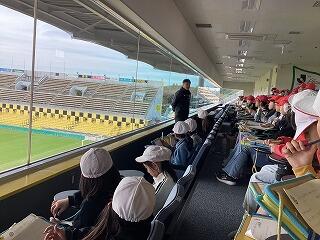 昨日、3年生が社会科見学(市内巡り)の一環として、三協フロンテア柏スタジアムに行きました。名戸ケ谷小学校の校舎からも、スタジアムの照明塔が見えるくらい身近な場所です。スタジアムは、学区の境界線であるバス通りを挟んで、すぐのところに位置しているため、学校から歩いていくことができます。