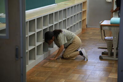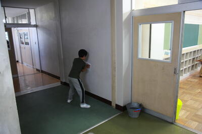 掃除活動を行っています。懸命にがんばっています。見ていて心がきれいになります。