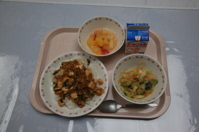 今日から給食が始まりました。2学期最初の給食メニューは麻婆豆腐です。