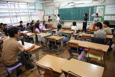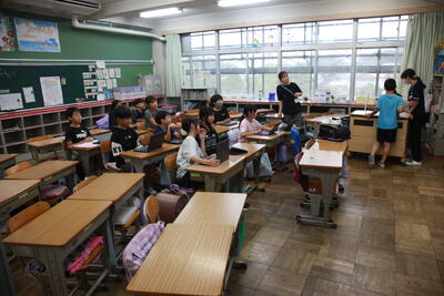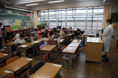 6年1組で、火垂るの墓について担任の先生が内容を紹介してました。今年の8月15日の終戦記念日にテレビ放映していましたので、ご覧になった方もいるのではないでしょうか。見るのが辛いという声や戦争の悲惨さを知るためには見た方が良い。という様々な声があがっている作品でもあります。戦争を体験した世代の生の声はあと5年が限界とも言われています。