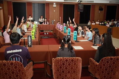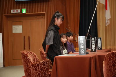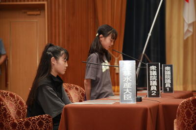 また、参議院の本会議場に似せた学習ルームで本番さながらの、議案の趣旨説明、質疑応答