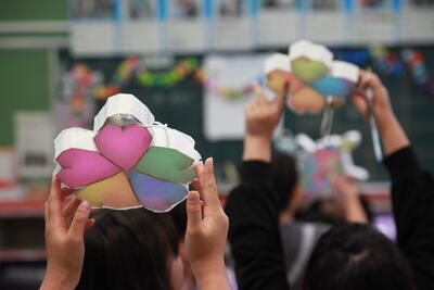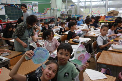 今日は、3年生の図工を見てきました。図工で、光と影の美しさを生かした