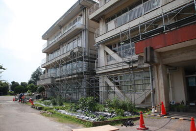 連日、外壁大規模修繕工事の足場作りが進んでいます。