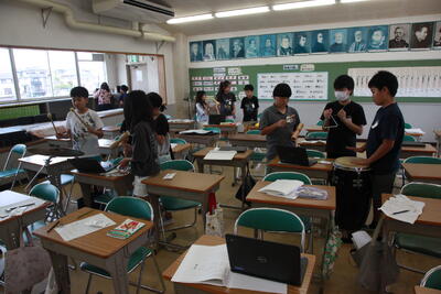 イヤホンを使い、耳で音を聴きながら叩いているグループもありました。
