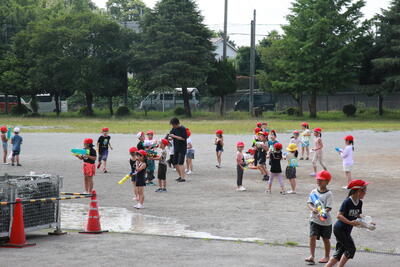 今日から水泳実施日を除く来週金曜日まで、生活科で水遊びの時間が始まりました。