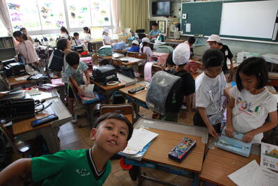 2年生のすべての机に天板拡張くんを1学期の間借りています。10cm奥に机が広がり、端に壁が作られることにより、タブレット、鉛筆、消しゴムなどの落下防止になります。落とし物も減るようです。