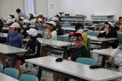 セミナールーム内で、椅子に座ったままVRゴーグルをかけて撮影された工場内に潜入し、