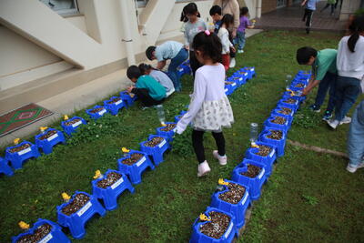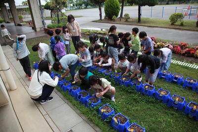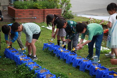 1年生もアサガオの種を蒔いて数日経ちましたが、発芽の様子を