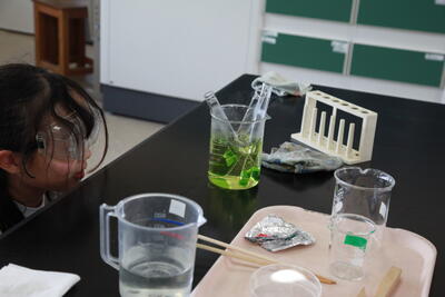 今日は、植物の光合成によるでんぷんの生成について、確認する実験を行いました。
