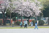 昨日の昼休み時間の様子と、2年生の授業での様子です。タブレットで写真を撮影していました。紅白の八重桜がとても見頃です。