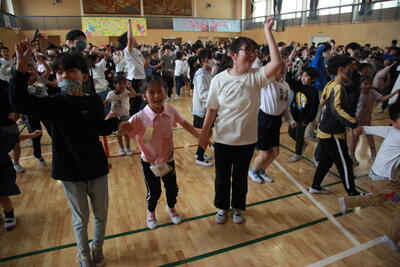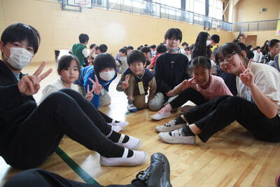 1年生が他学年と猛獣狩りゲームを通じて交流しました。